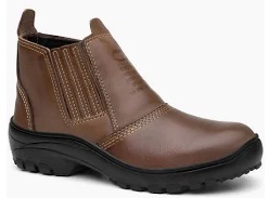 Botina de Couro Vaqueta Elástico Solado PU com bico de PVC Marrom |